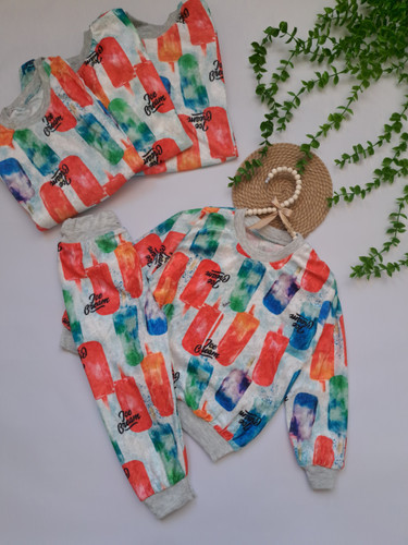 بلوزوشلوار مخمل اسپرت طرح بستنی